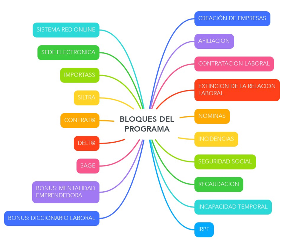 Te familiarizarás con las aplicaciones de la gestión laboral, Sistema red, Sede Electrónica, Siltra, Contrat@, Delt@ y Sage.